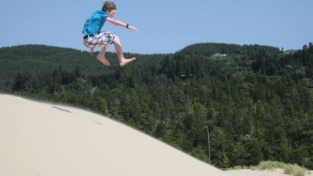 The favorite activity of the whole trip was visiting the Oregon Dunes National Recreation Area. We spent a couple of hours playing on the dunes that stretched for miles along the coast between the ocean and pine forests. The sun was out but it was refreshingly cool (maybe 70 degrees?)